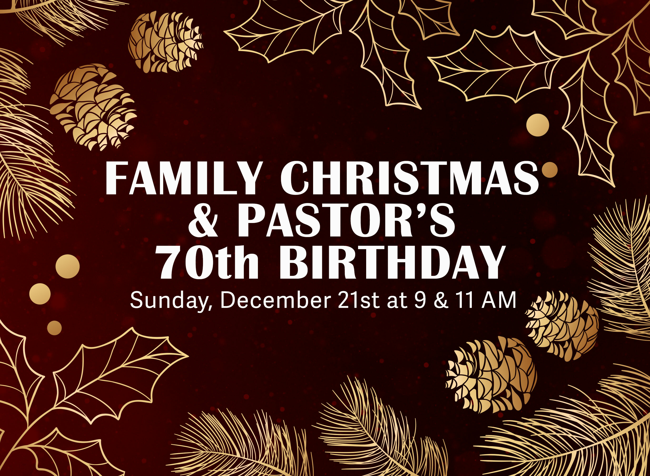 Join us with your entire family for Family Christmas on Sunday, December 21st! It's going to be a wonderful service filled with Christmas music and a reading of the real story of Christmas! We will also celebrate Pastor Gene Lingerfelt's 70th birthday!