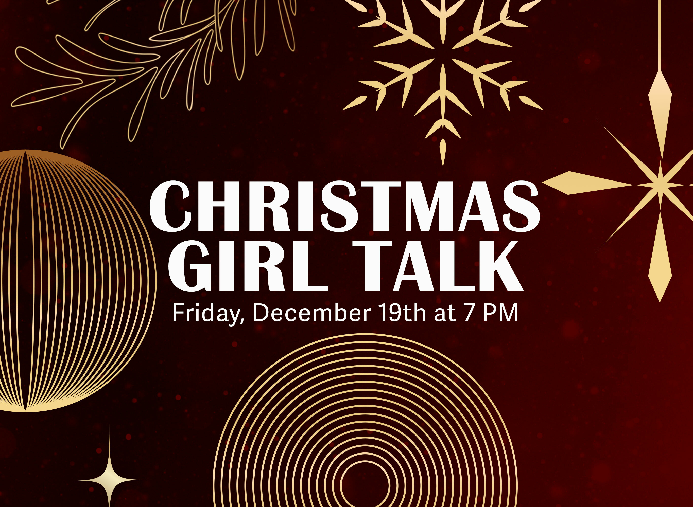 Our Christmas Girl Talk is coming up and we are so excited! On December 19th, we will have a great time celebrating the Christmas season with all of the ladies of FCC!