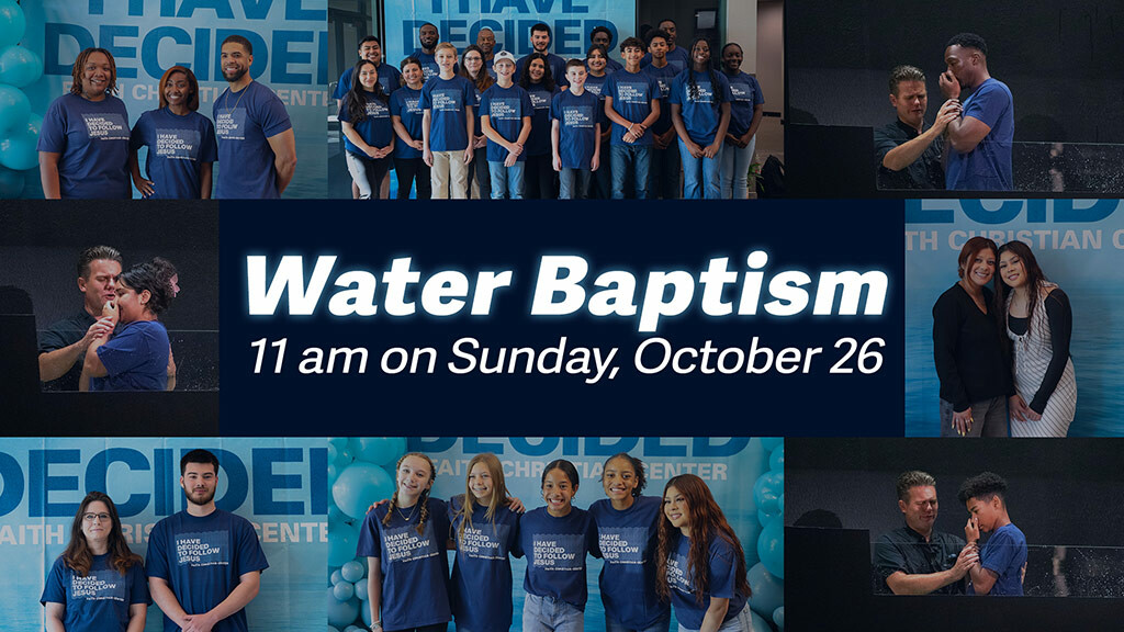 Water Baptism is coming up on Sunday, October 26th during the 11 AM service! The next step after salvation is water baptism, which is a public profession of your faith in Christ. Jesus was baptized in water and He told us to follow His example. Baptism demonstrates that the old man or woman has passed away and that you are now a new creation in Christ Jesus. The minimum required age for water baptism is age 13. If you are ready to take this step of faith and to be baptized, sign up at Guest Services or fill out the form below. Then, on Sunday, October 26th, arrive early to attend the required baptism class at 10 am in Room 240. Please bring an appropriate pair of dark clothing for baptism, a towel, and a change of clothes. Invite your friends and family to celebrate with you! You will receive a free t-shirt, and there will be an opportunity to take photos.
