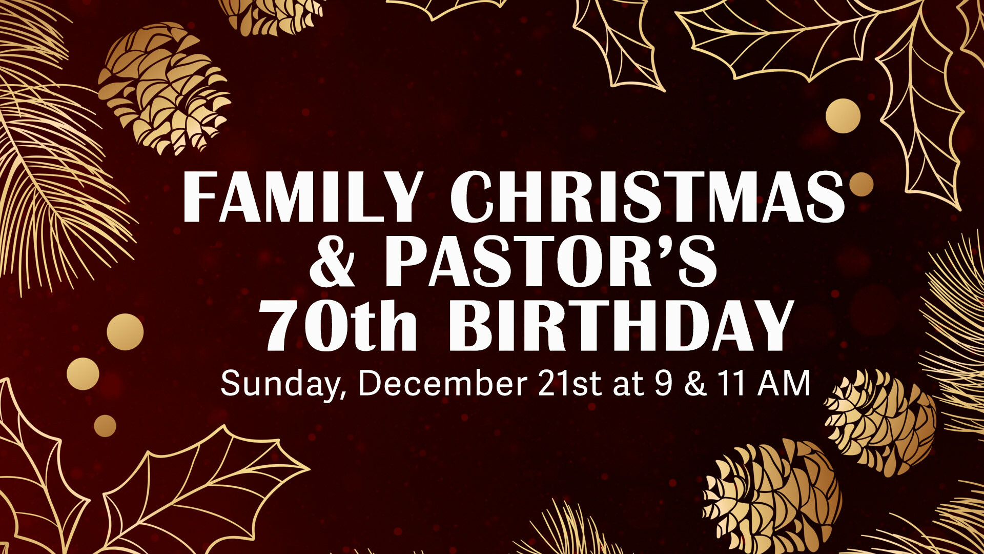 Join us with your entire family for Family Christmas on Sunday, December 21 at 9 am and 11 am. There will be special Christmas worship, featuring the children, along with a traditional reading of the Christmas story. We will also have a special celebration in honor of Pastor Gene Lingerfelt's 70th birthday! It is a wonderful time to invite and bring someone who wouldn't normally come to church. Don't miss this special Family Christmas!