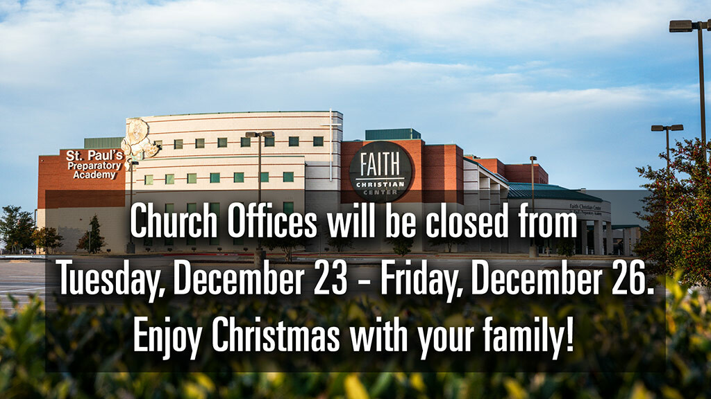 Church Offices will be closed from Tuesday, December 23 - Friday, December 26. Enjoy Christmas with your family!